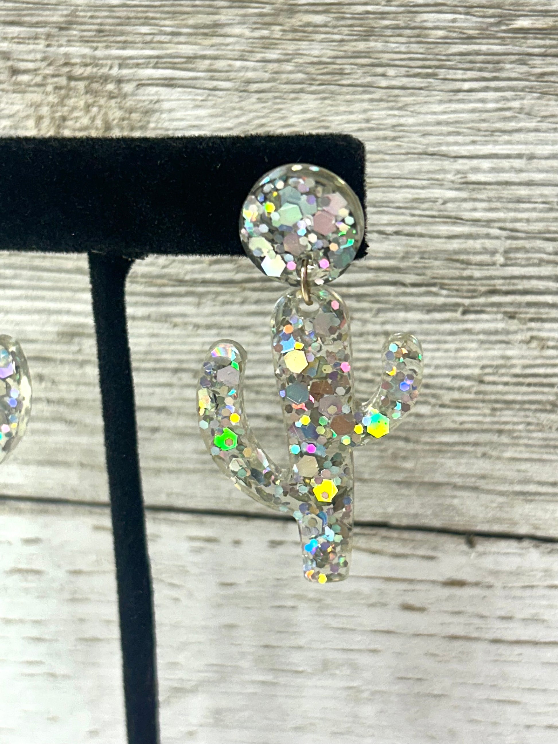 Cactus Sparkle Resin Earrings