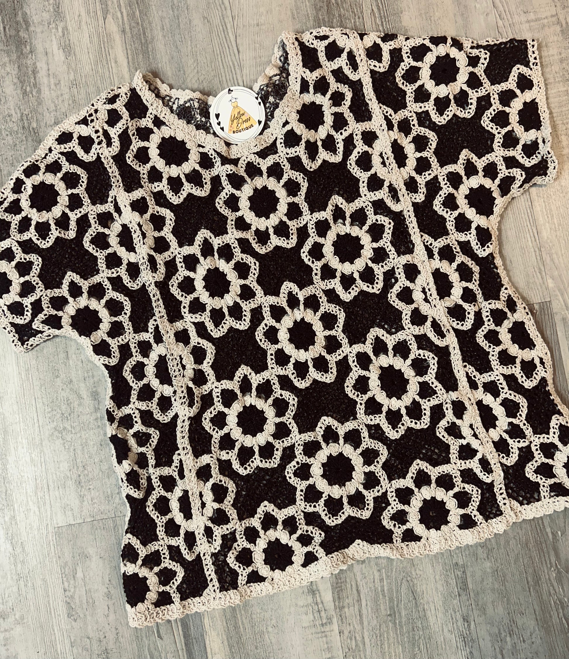 - This black and cream crochet floral top is the kind of piece you throw on and instantly feel put together!