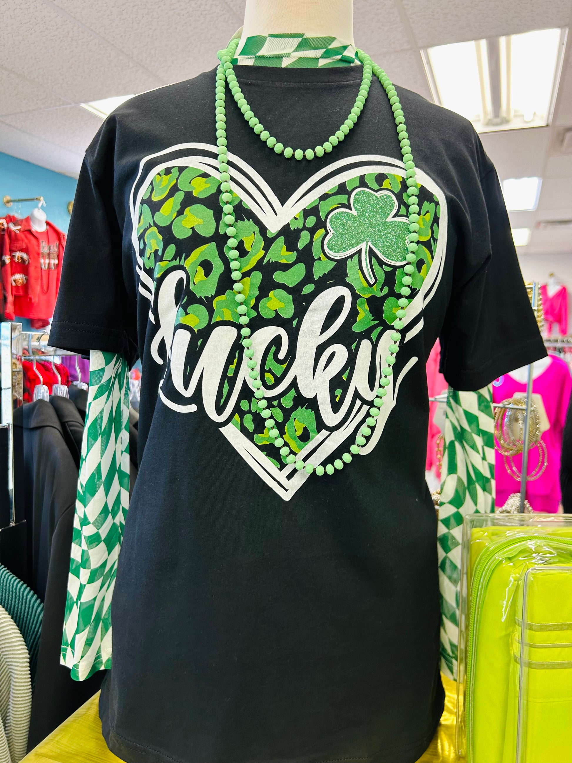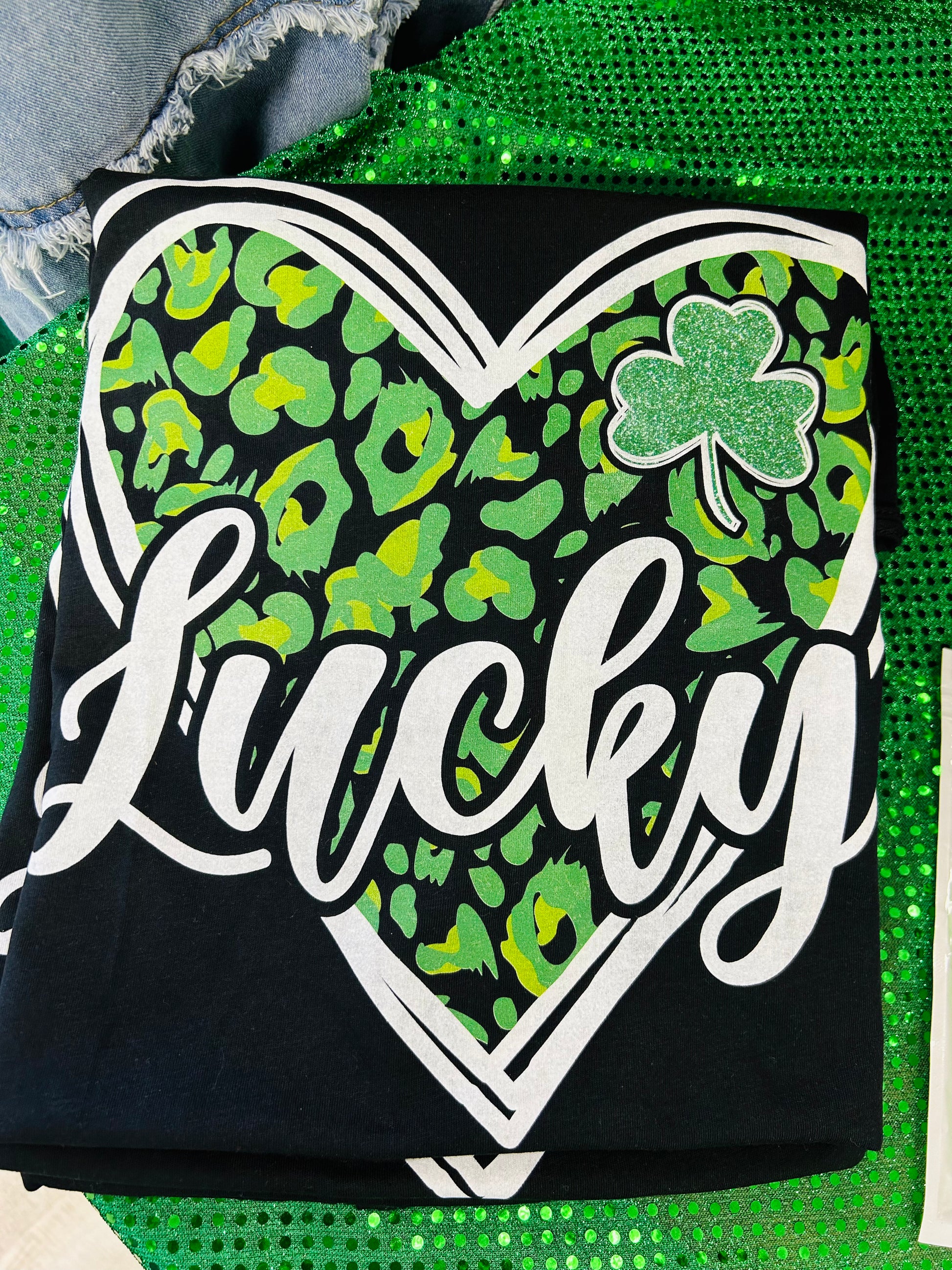 - Feel all of the LUCK in this adorable leopard heart tee!