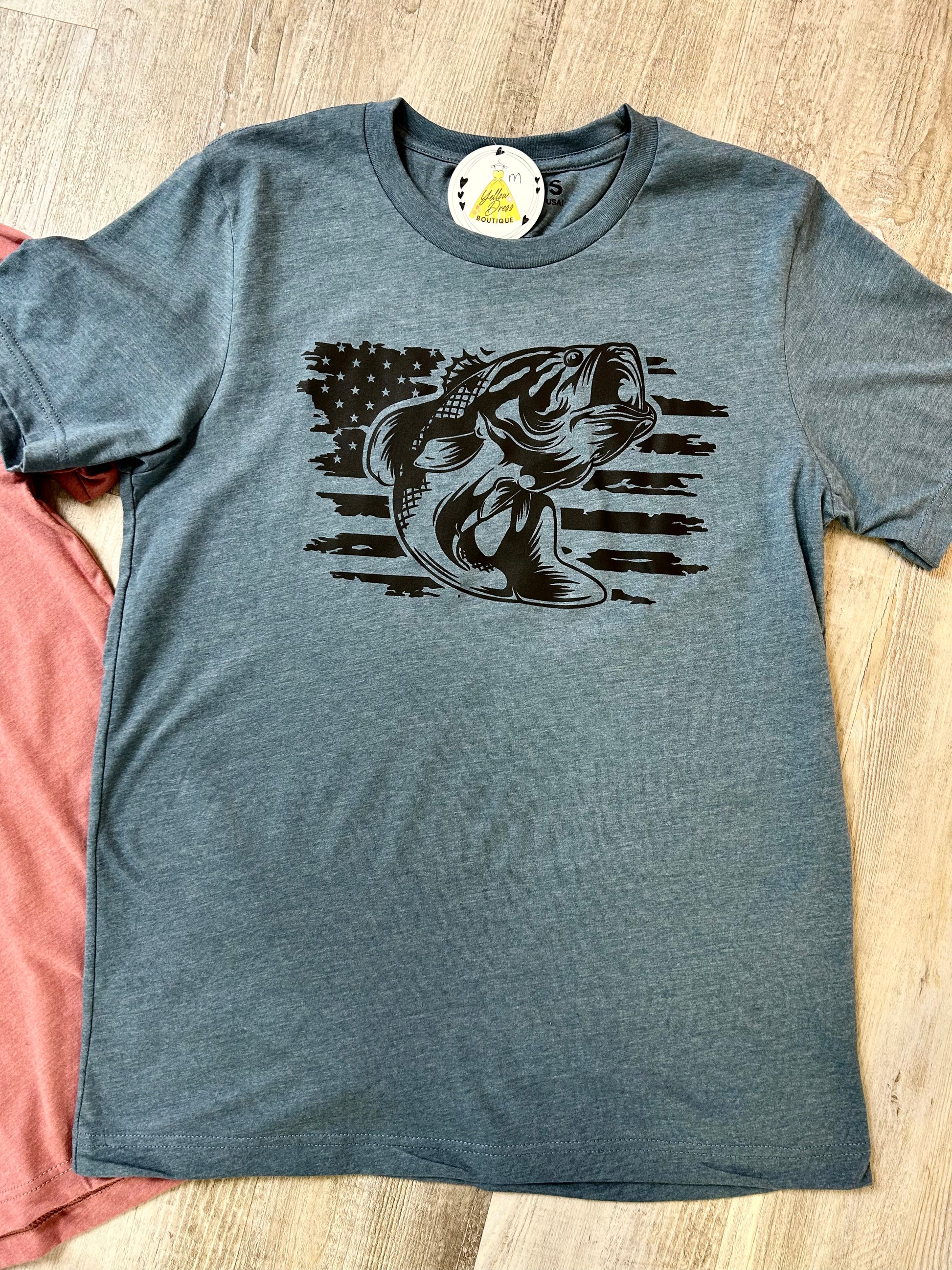 - Catch your next big bass in this stylish men's fishing t-shirt!