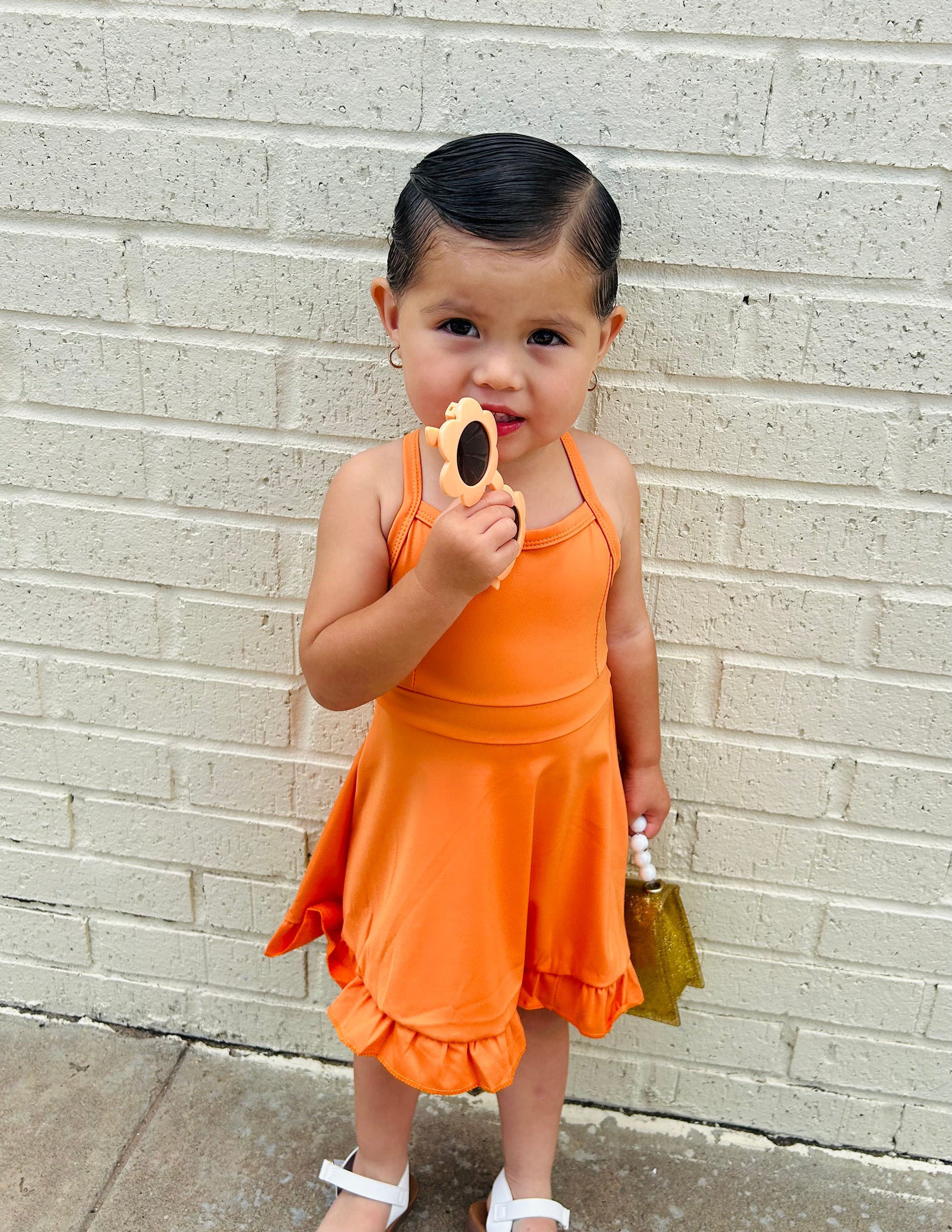 This Children's Orange Ruffle Active Wear Dress combines playful style with comfort.